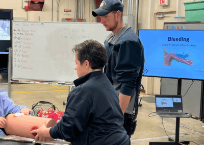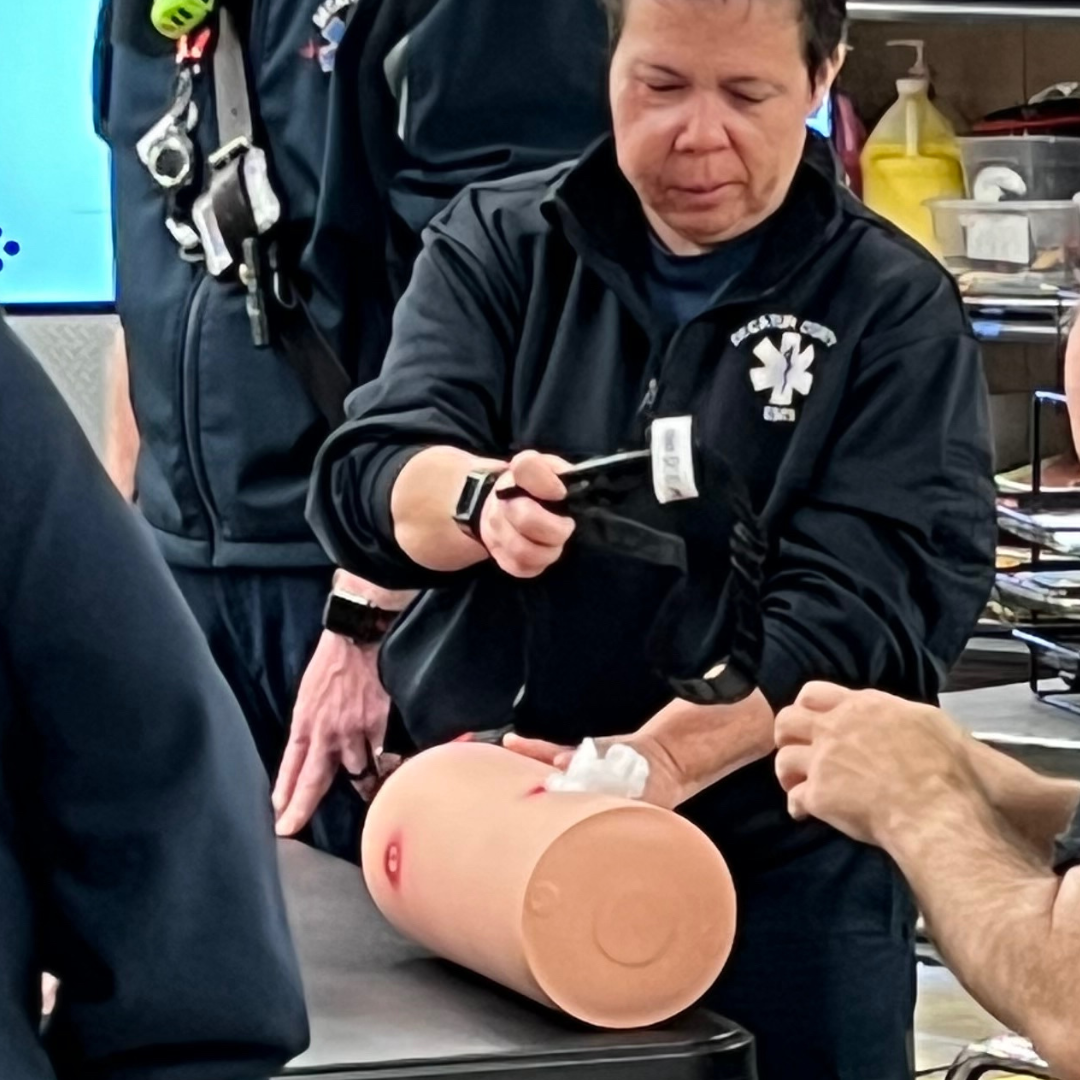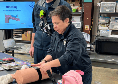 Led by DCMH’s Staff Development Coordinator, Anne Swinney, alongside the DCEMS Manager, Matt Myers, and the DCEMS team, the presentation emphasized the importance of scene safety and recognizing when to call for help. Participants also learned practical, everyday emergency response basics, including what to do during bleeding emergencies, burns, head and neck injuries, choking incidents, and other common situations where quick action can make a difference.